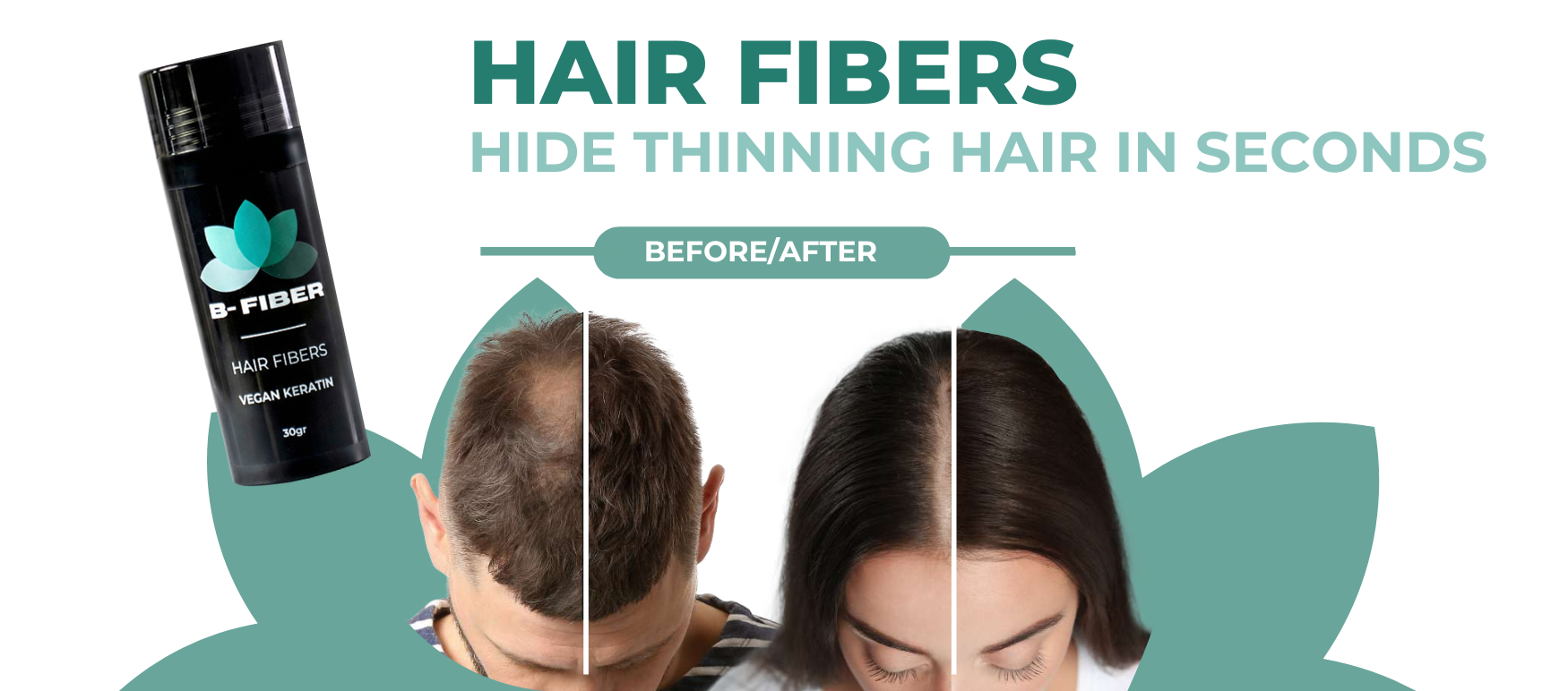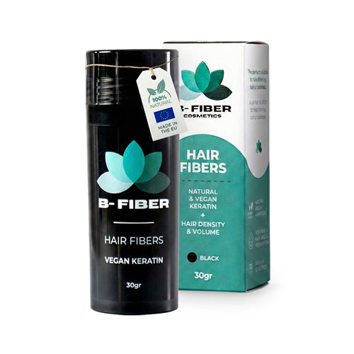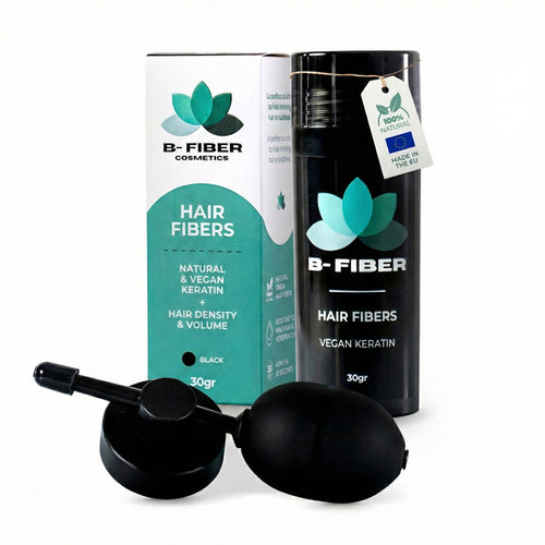 B-Fiber haarvezels zijn kleine deeltjes die zich door elektrostatische lading aan het haar hechten, waardoor het haar dikker en voller lijkt.